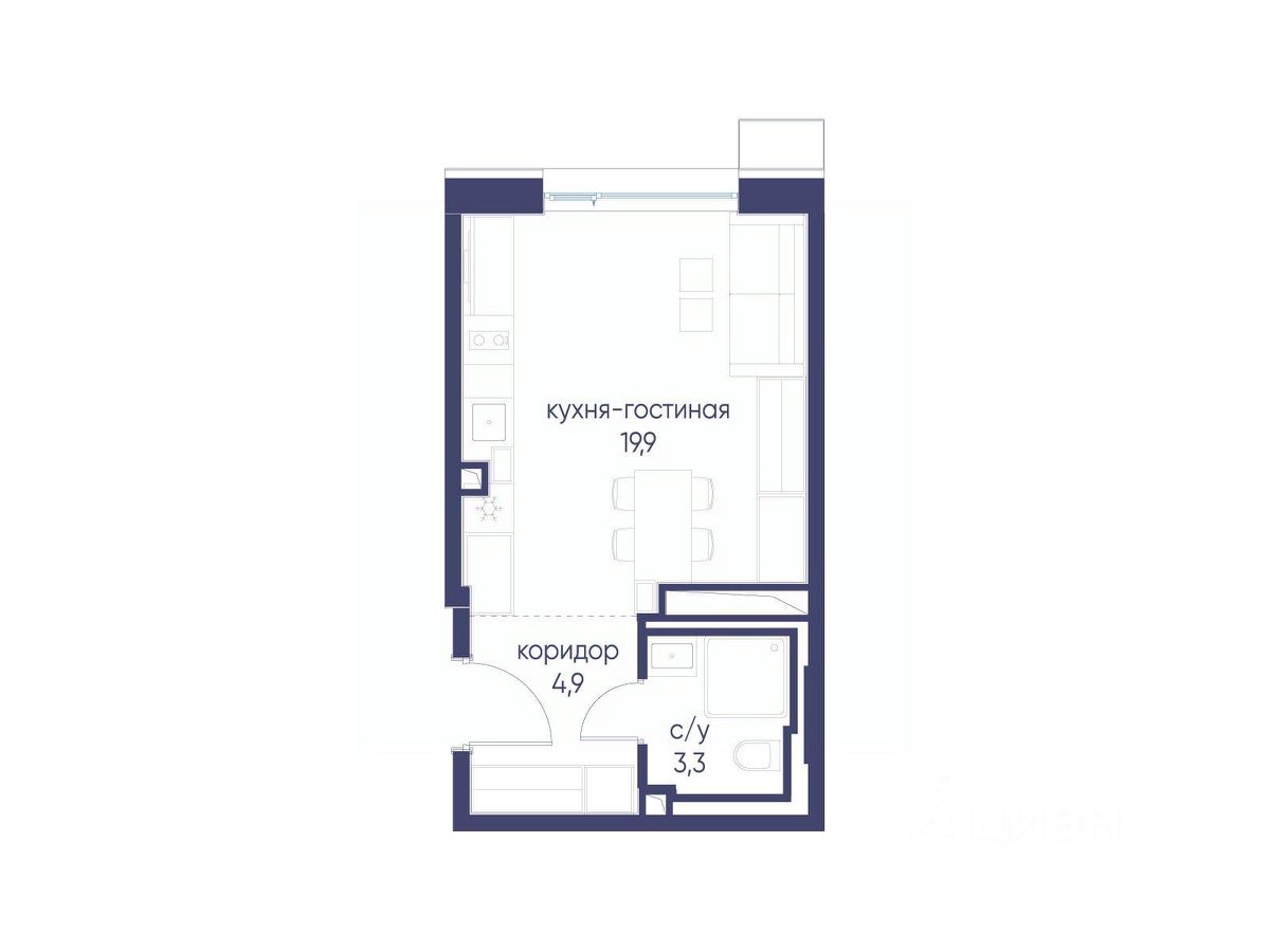 Продается квартира-студия от застройщика: общая площадь 28.10 м², жилая 15.00 м², кухня 4.90 м², 21-й этаж, жилой квартал "Гордость", корпус 40 (секция 1). Срок сдачи: 2 квартал 2029 года.
