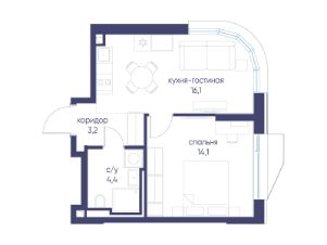 Продается 1-комнатная квартира от застройщика: общая площадь 37.80 м², жилая 14.10 м², кухня 16.10 м², 2-й этаж, жилой квартал "Гордость", корпус 40 (секция 1). Срок сдачи: 2 квартал 2029 года.
