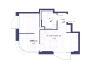 Продается 1-комнатная квартира от застройщика: общая площадь 37.80 м², жилая 14.30 м², кухня 16.60 м², 2-й этаж, жилой квартал "Гордость", корпус 40 (секция 1). Срок сдачи: 2 квартал 2029 года.