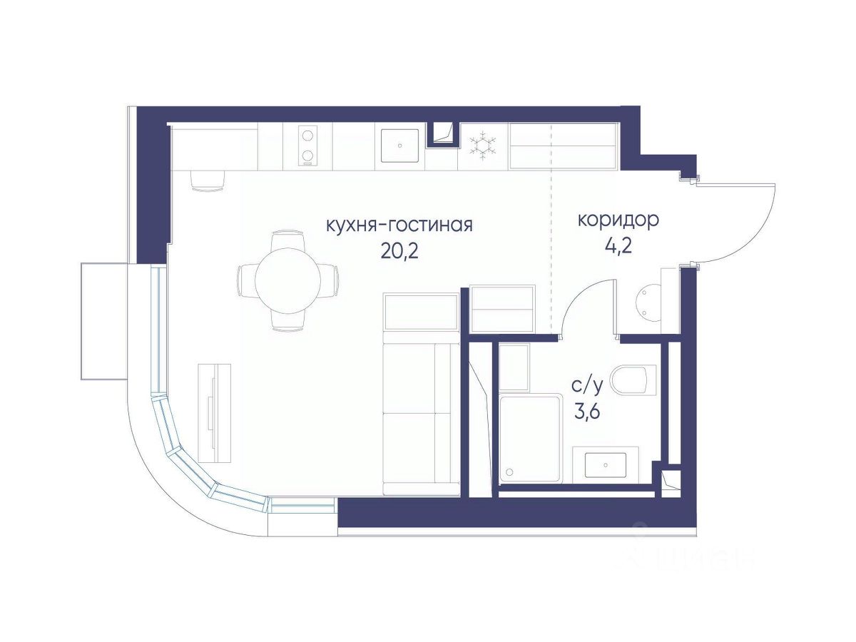 Продается квартира-студия от застройщика: общая площадь 28.00 м², жилая 15.20 м², кухня 5.00 м², 21-й этаж, жилой квартал "Гордость", корпус 40 (секция 1). Срок сдачи: 2 квартал 2029 года.