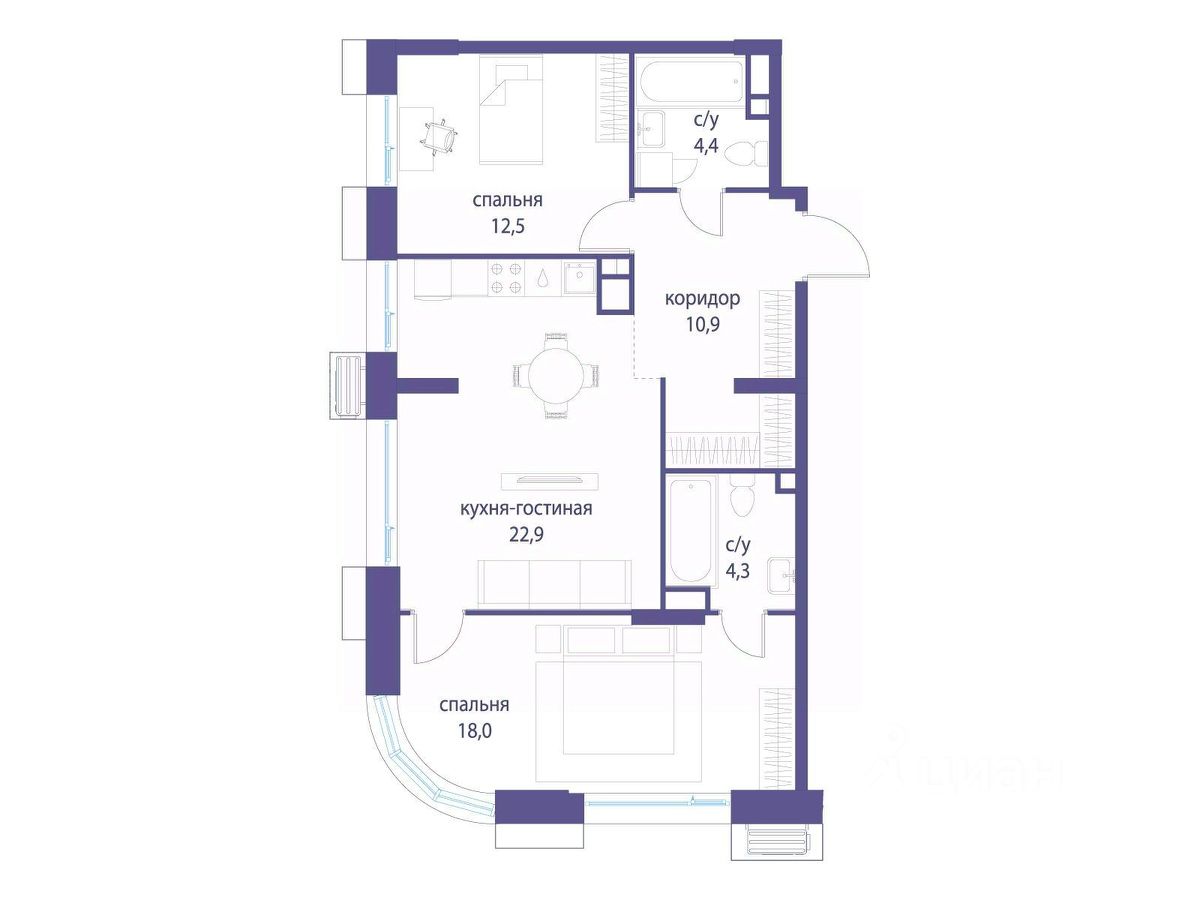 Продается 2-комнатная квартира от застройщика: общая площадь 73.00 м², жилая 30.50 м², кухня 22.90 м², 4-й этаж, жилой квартал "Гордость", корпус 36 (секция 5). Срок сдачи: 2 квартал 2029 года.