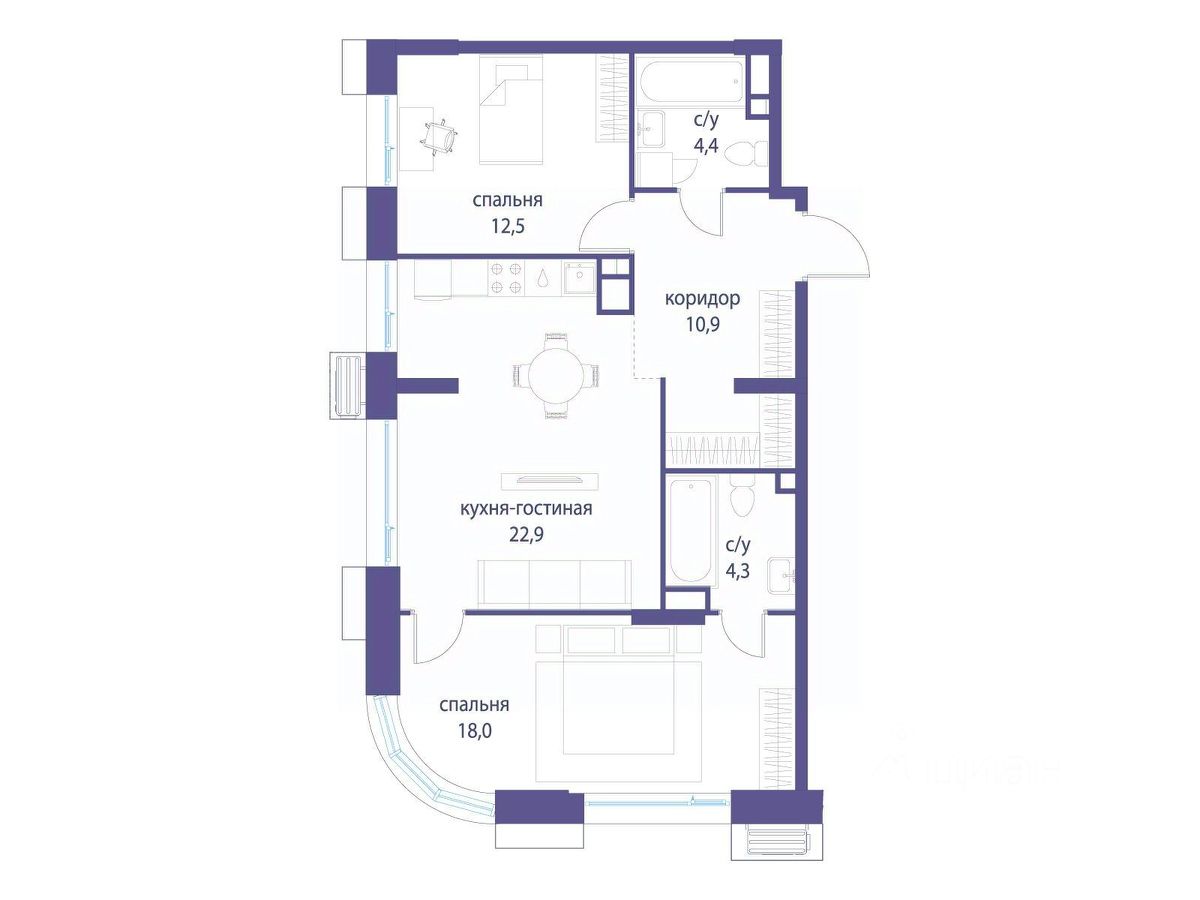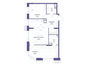 Продается 2-комнатная квартира от застройщика: общая площадь 73.00 м², жилая 30.50 м², кухня 22.90 м², 9-й этаж, жилой квартал "Гордость", корпус 36 (секция 5). Срок сдачи: 2 квартал 2029 года.