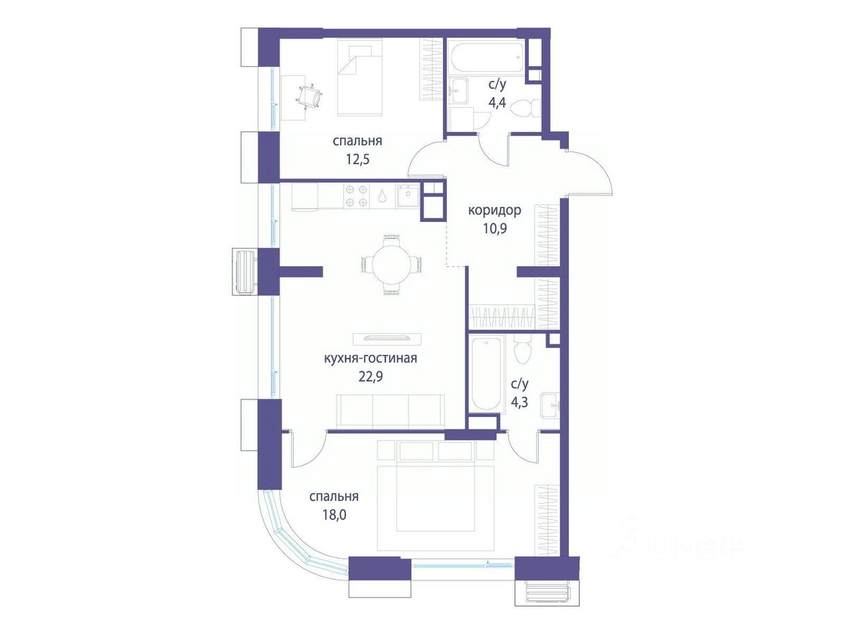 Продается 2-комнатная квартира от застройщика: общая площадь 73.00 м², жилая 30.50 м², кухня 22.90 м², 11-й этаж, жилой квартал "Гордость", корпус 36 (секция 5). Срок сдачи: 2 квартал 2029 года.