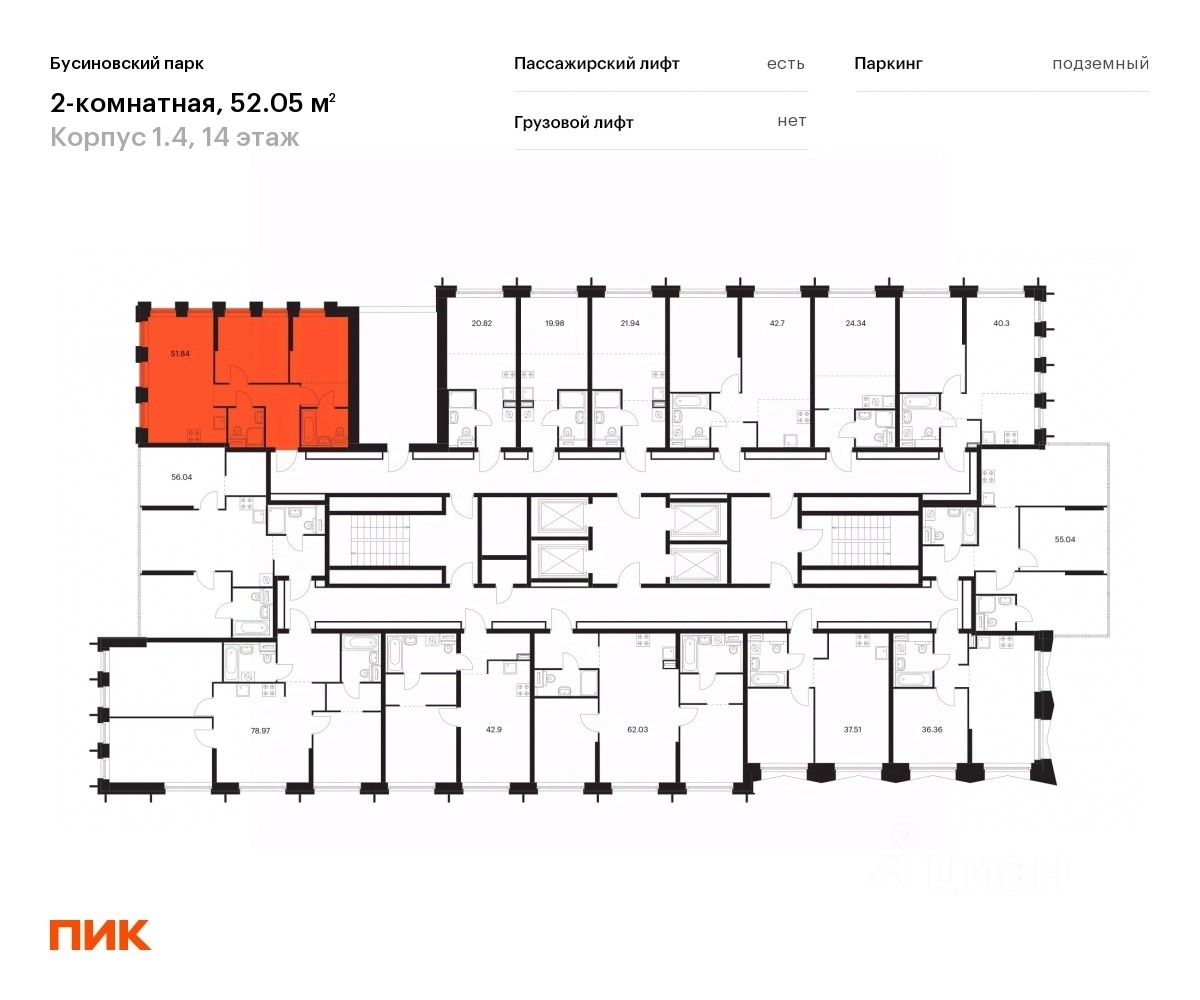 Продаётся 2-комн. квартира площадью 54,94 кв.м на 14 этаже 32 этажного дома (Корпус 1.4, Секция 2) проекта ПИК Бусиновский парк. Светлый просторный подъезд на уровне земли, функциональная планировка, большие окна, c отделкой.