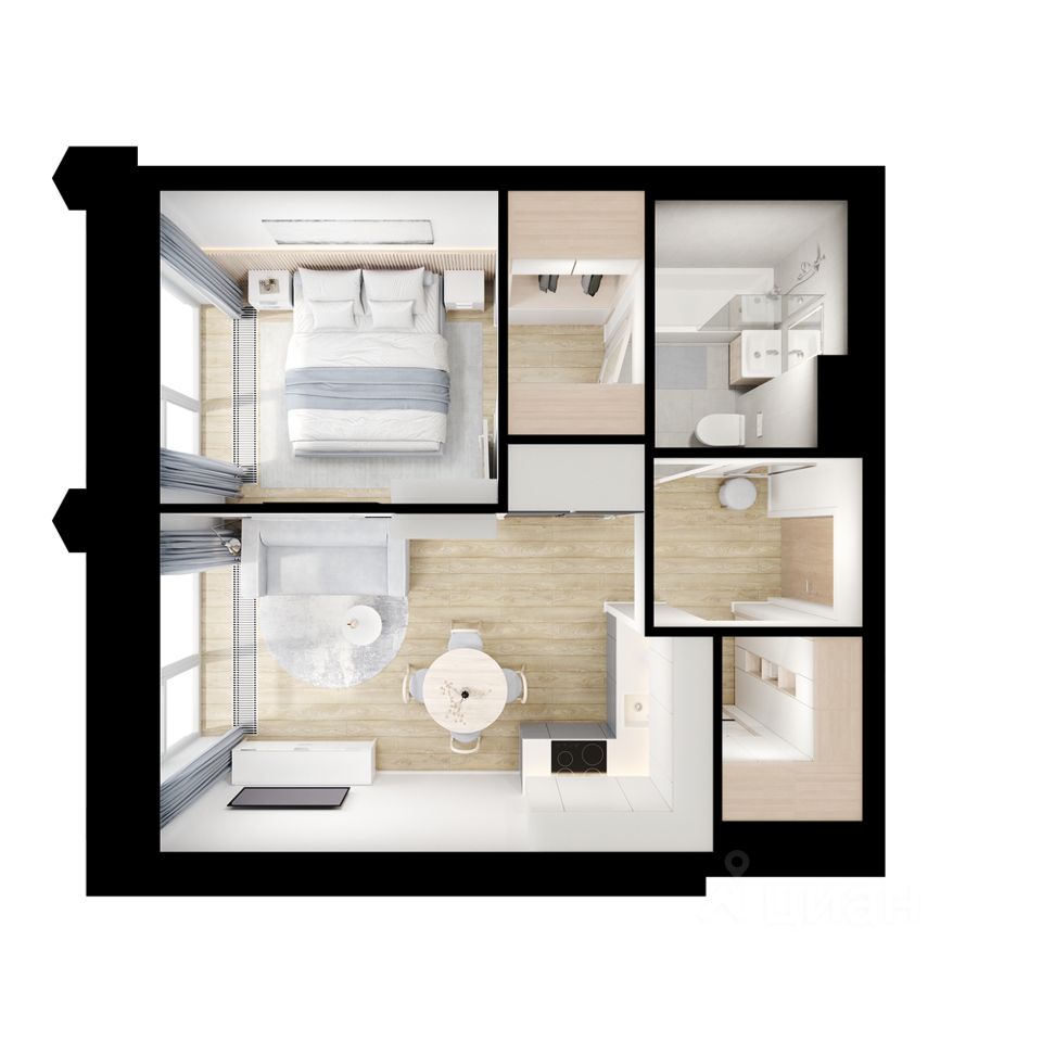 В "Бусиновском парке" предусмотрены квартиры с панорамным остеклением, различными балконами, эркерами, угловыми окнами и большим количеством окон — до пяти в одной комнате. В таких квартирах широкий угол обзора: можно пить кофе, наблюдая за жизнью на улице и наслаждаясь ощущением простора. Ещё больше комфорта придаст мягкий солнечный свет, который равномерно осветит всю квартиру. Артикул 9