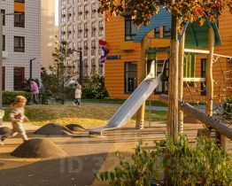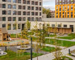 В проекте предусмотрена медленная зона для электросамокатов — с 7 утра до полуночи при въезде на территорию квартала скорость электросамокатов автоматически снижается до 15 км/ч. Артикул 976347 (Застройщик АО "Специализированный застройщик "Волжский парк"")