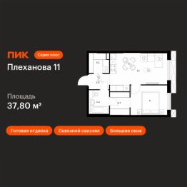 Продаётся 1-комн. квартира площадью 37,8 кв.м на 21 этаже 31 этажного дома (Корпус 1.5, Секция 5) проекта ПИК Плеханова 11. Светлый просторный подъезд на уровне земли, функциональная планировка, большие окна, c отделкой.