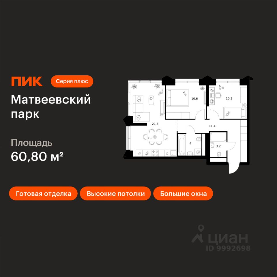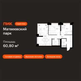 Продаётся 2-комн. квартира площадью 60,8 кв.м на 1 этаже 25 этажного дома (Корпус 4.6, Секция 4) проекта ПИК Матвеевский парк. Светлый просторный подъезд на уровне земли, функциональная планировка, большие окна, c отделкой.