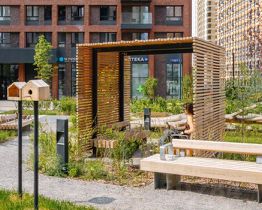 У проектов будет общая инфраструктура и благоустроенная территория. Уже открыта часть пешеходного бульвара, который строится по проекту британского бюро. Здесь можно гулять после работы, играть с детьми, заниматься спортом и отдыхать у сухого фонтана с ночной подсветкой. В будущем в кластере появится пешеходный мост, который соединит жилые кварталы, и комьюнити-центр "ОМА" с магазинами, кафе, местами для спорта, встреч и общения.