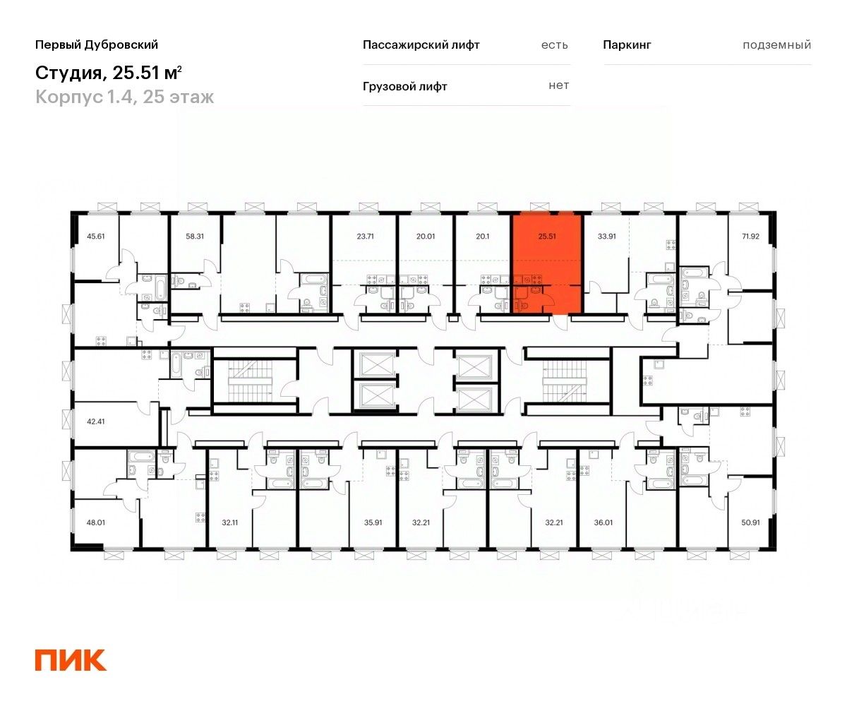 Продаётся квартира-студия площадью 24,9 кв.м на 25 этаже 38 этажного дома (Корпус 1.4, Секция 2) проекта ПИК Первый Дубровский. Светлый просторный подъезд на уровне земли, функциональная планировка, большие окна, c отделкой.