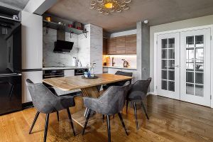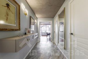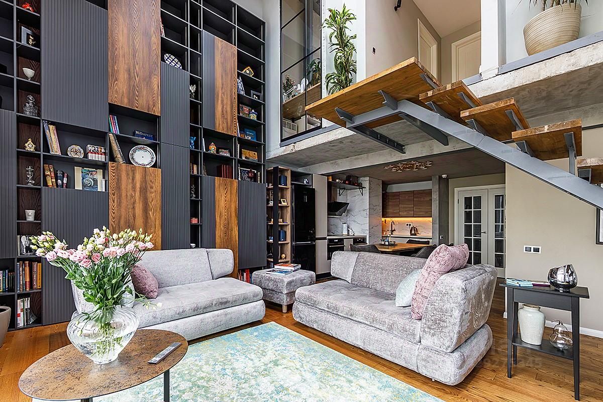 На продажу предлагается трехуровневый жилой апартамент общей площадью 150,2 кв.м. На первом уровне расположены прихожая, гардеробная для верхней одежды, гостевой санузел, кухня и двухсветная гостиная с большим панорамным окном, из которого открывается вид на Елоховский собор и старую Москву. На втором уровне находится родительская мастер-спальня с гардеробной и собственным санузлом, из которой по лестнице можно попасть в рабочую (кабинетную) зону, две детские комнаты со своими санузлами, рабочими зонами и зонами отдыха, из которых по лестнице можно подняться на третий уровень, используемый как спальни.