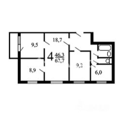 Комнаты смежно-изолированные, их площадь — 9 + 9 + 15 и 18 кв. м соответственно.