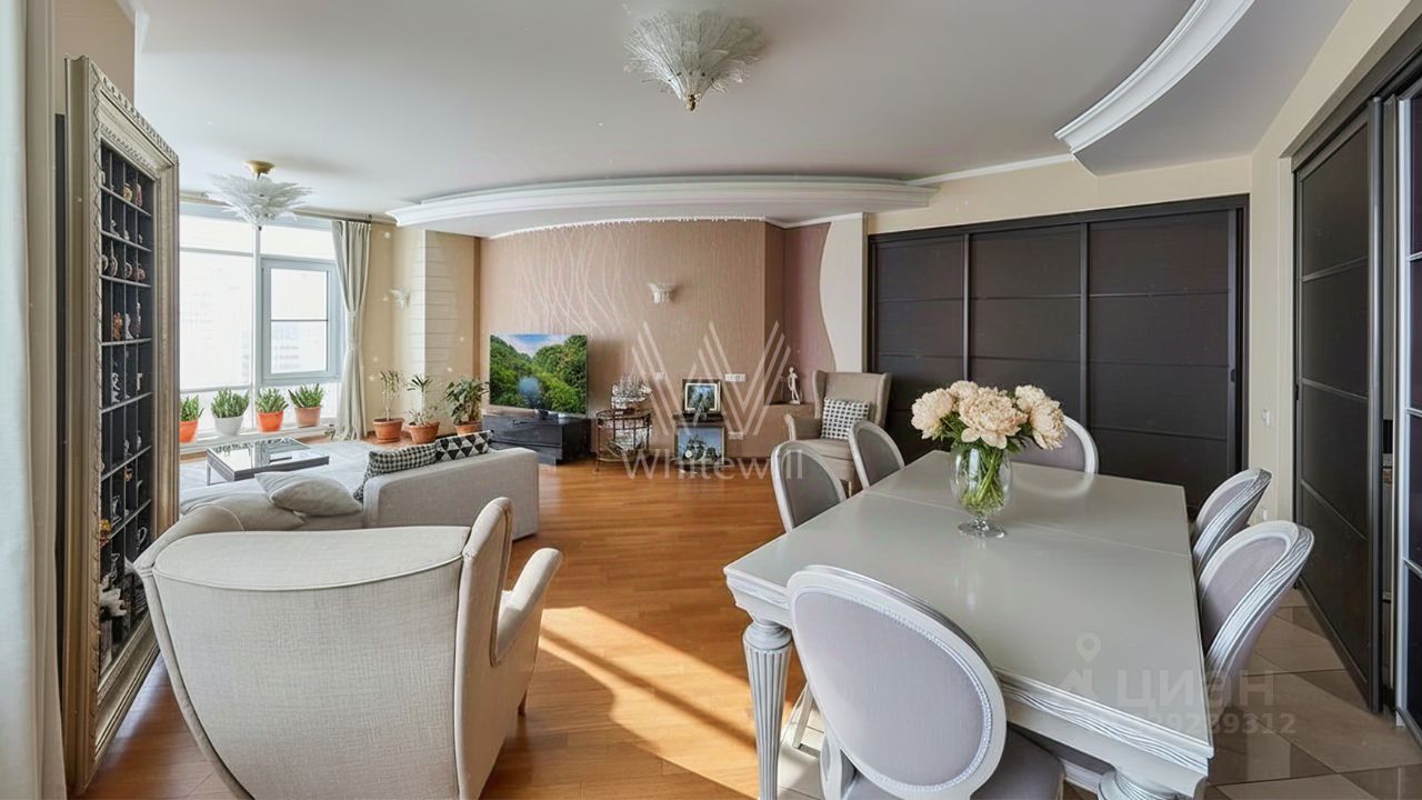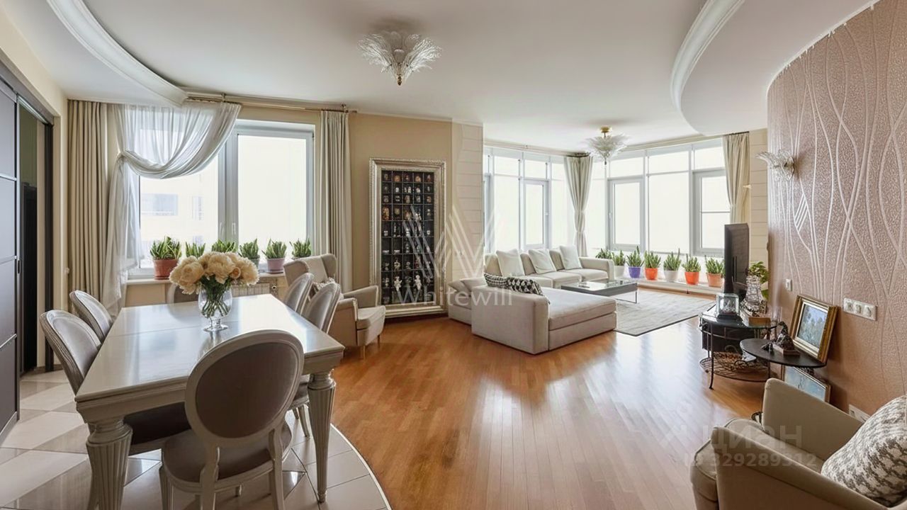 Просторная квартира с 4 спальнями в комплексе премиум-класса "Воробьёвы горы". Квартира площадью 235 м² расположена на 5 этаже в корпусе 7. Выполнена отделка в неоклассическом стиле. Продуманы различные сценарии освещения — люстры, настенные светильники и споты. Планировка включает гостиную с обеденной зоной, кухню, 4 спальни, 3 санузла. Квартира укомплектована мебелью. Из окон открываются виды на Мосфильмовский пруд и Поклонную гору. В стоимость включены 2 машино-места в подземном паркинге.