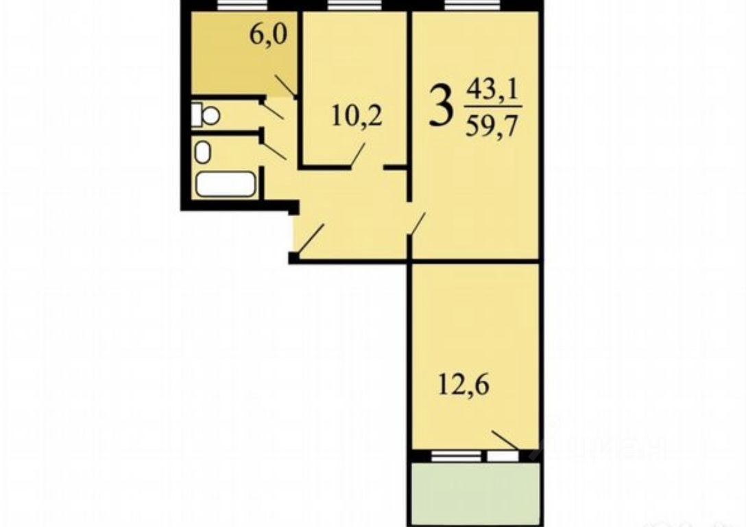 Свободная планировка под ваши решения. Окна выходят во двор - комната с балконом / на улицу выходит - кухня, маленькая и большая комната.