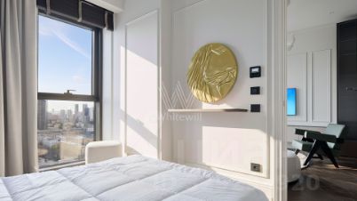 Видовые апартаменты с 1 спальней общей площадью 51 м² в комплексе премиум-класса "Поклонная, 9". Апартаменты с дизайнерской отделкой расположены на 27 этаже, откуда открываются захватывающие виды на башни "Москва-Сити" и Кутузовский проспект. Интерьер оформлен в современном стиле с использованием натуральных материалов — на полу выложена инженерная доска из дуба премиальной селекции, стены покрыты французской краской "Мэджестик" (Majestic).
