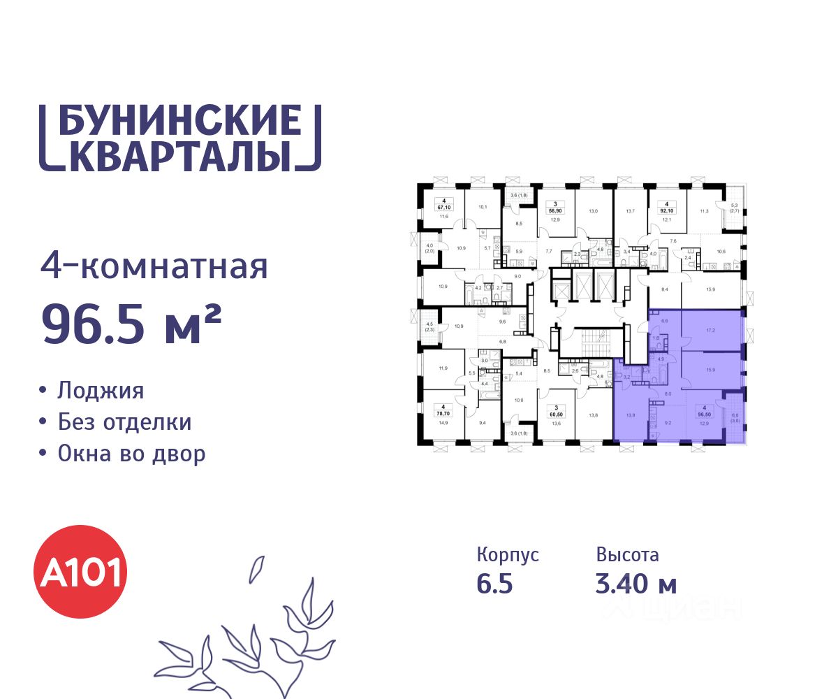 Продается четырехкомнатная квартира 576 в новостройке ЖК "Бунинские кварталы" по адресу Москва, ТиНАО, Новомосковский АО, Сосенское С/П, жилой комплекс Бунинские Кварталы, 6.5, район Коммунарка, Новомосковский административный округ, Москва. Общая площадь квартиры - 96.20 кв. м., этаж 21 из 21, секция 8. Тип проекта, по которому построен дом - монолит, компания-застройщик - ООО "А101". Стоимость квартиры - 32241430 Р.