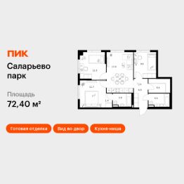 Продаётся 3-комн. квартира площадью 72,4 кв.м на 18 этаже 23 этажного дома (Корпус 69.4, Секция 4) проекта ПИК Саларьево парк. Светлый просторный подъезд на уровне земли, функциональная планировка, большие окна, c отделкой.