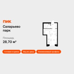 Продаётся квартира-студия площадью 28,7 кв.м на 2 этаже 23 этажного дома (Корпус 69.4, Секция 4) проекта ПИК Саларьево парк. Светлый просторный подъезд на уровне земли, функциональная планировка, большие окна, c отделкой.