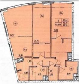 Жилая площадь 63 кв.м., потолки 3,5 м.