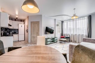 В квартире есть оборудованная кухня со встроенной техникой, уютная жилая зона, отдельная спальня, вместительные системы хранения и современный санузел. Интерьер собран в спокойной нейтральной стилистике.