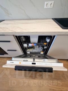 На кухне новый кухонный гарнитур со встроенной техникой, в том числе полноразмерной посудомоечной машиной 60 см с возможностью управления онлайн. Вся техника новая с гарантийными документами. В каждом помещении в квартире продуманы разные сценарии освещения: точечные подвесные светильники, основное освещение, подсветка штор, подсветка зеркала в ванной.