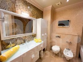 Великолепная меблированная квартира в жилом комплексе "Доминион" в Раменках. Общая площадь 165,1 кв. м, расположена на 6-м этаже 2-го корпуса (лучшего в ЖК). Выполнен высококачественный ремонт с использованием дорогостоящих материалов. Планировка: прихожая, кухня, гостиная, кабинет, 3 спальни, 2 гардеробные, 3 санузла, постирочная. Квартира укомплектована мебелью и комплектующими ведущих мировых производителей Minotti, Provasi, Mantellassi, Pataviumart, Arca. Бытовая техника Kuppersbush, Miele. Телевизионное оборудование Loewe. При необходимости, мебель вывезем. Система кондиционирования DAIKIN, приточно-вытяжная вентиляция Breezart, встроенный пылесос. Окна на две стороны света, открываются великолепные виды на МГУ и благоустроенную территорию комплекса. Квартира в чудесном состоянии, все косметические недочеты были устранены до продажи. Квартира была объединена из двух соседних меньшей площади, что подтверждается распоряжением Мосжилинспекции на переустройство. Документы приведены в законное соответствие, сейчас это один объект недвижимости, кадастровый номер и лицевой счёт.