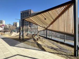Пространство разделено на функциональные зоны. Детские площадки, игровые для подростков, зоны отдыха и комьюнити, воркаут-площадка, поле для мини-гольфа. Квартал озеленен, оснащен удобной системой навигации и архитектурным освещением.