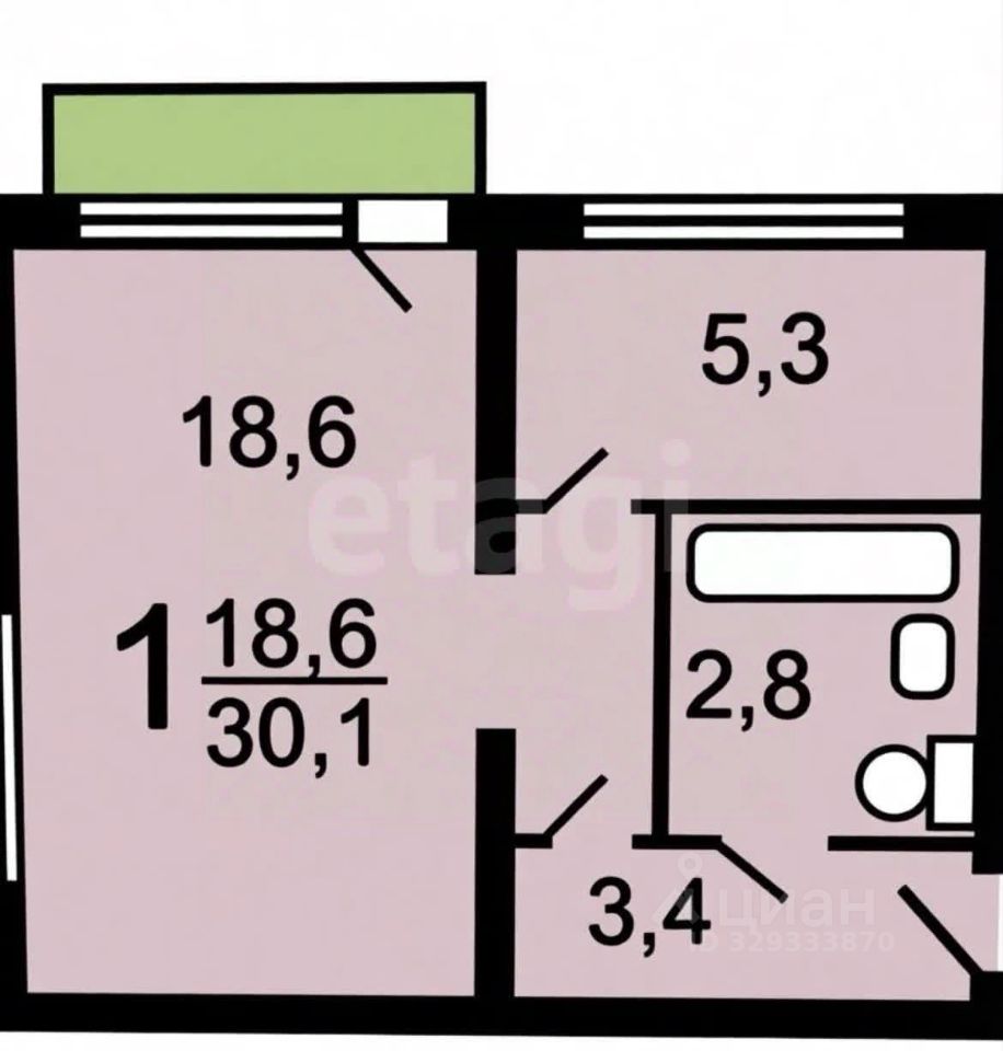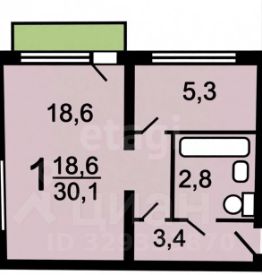 - общую площадь 31,2 м² (18 м² жилая, 6 м² кухня) на 4м этаже 5этажного дома;
