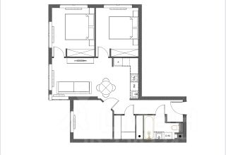 Квартира имеет очень удобную, угловую планировку, которая включает в себя просторную кухню-гостиную, с большой кухонной зоной со встроенной техникой и мягкой зоной ТВ, две отдельные спальни, укомплектованные заказной корпусной мебелью и кроватями с подъёмным механизмом, комнату свободного назначения, которая может стать уединенным кабинетом или детской, просторный санузел с ванной, а также вместительную гардеробную.
