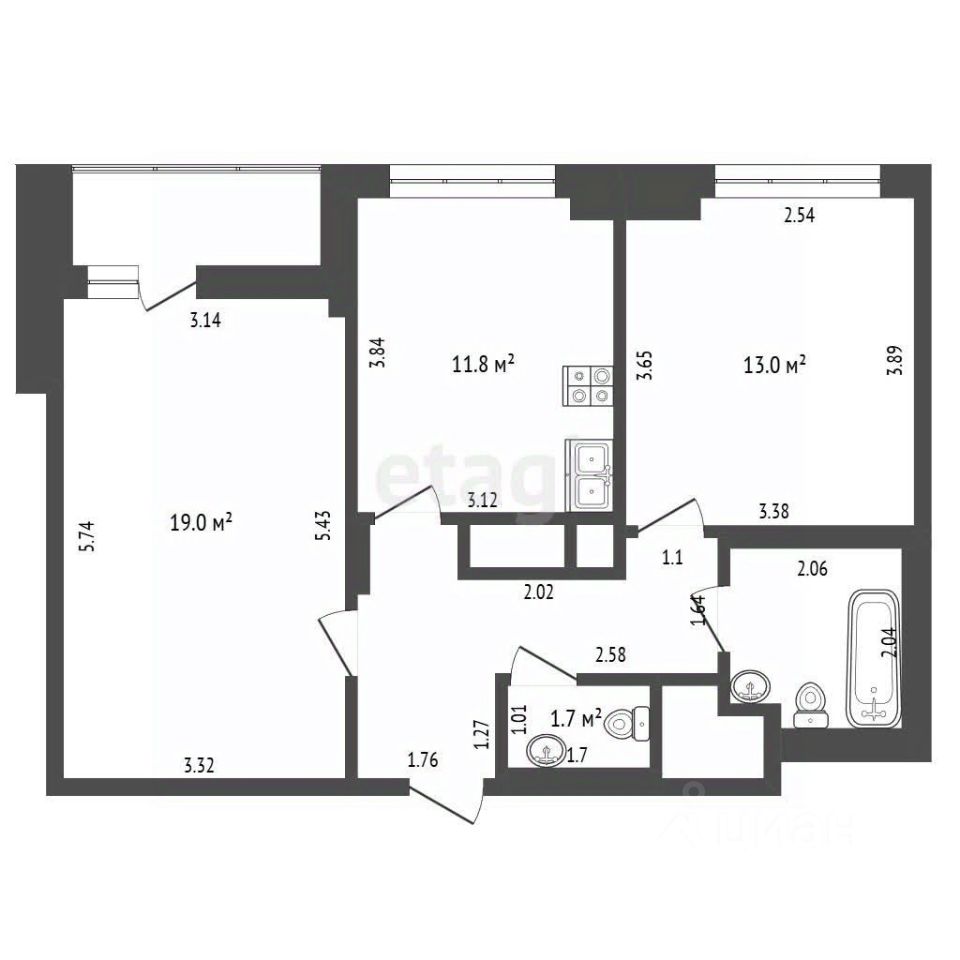 Удобная планировка две раздельные комнаты оптимальных пропорций, просторная кухня, два санузла (утром без очередей).