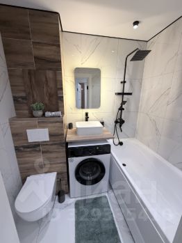 В ванной комнате установлена инсталляция с подвесным унитазом, а так же другие качественные и стильные сантехнические элементы.