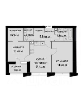 Планировка: два санузла (можно сделать постирочную), две гардеробных (одна при возле, что очень удобно для верхней одежды, вторая в спальной комнате), две комнаты и кухня-гостиная, лоджия.