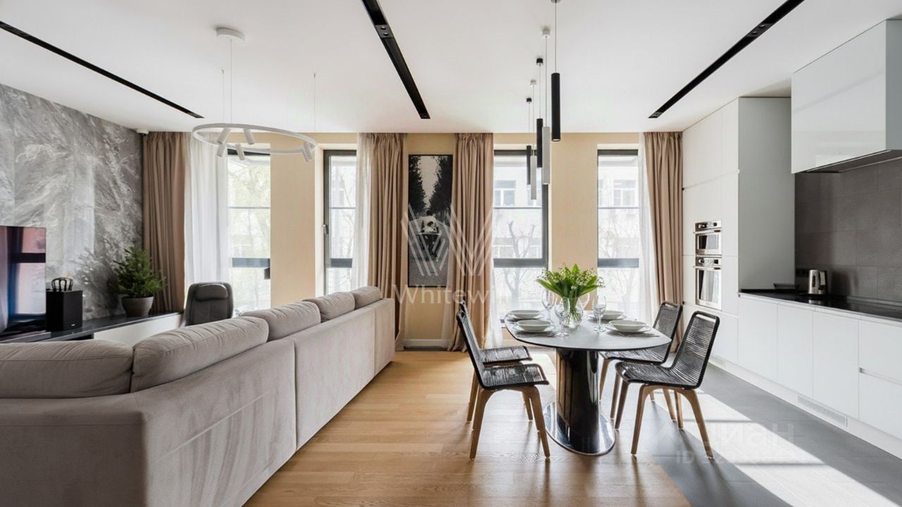 Эксклюзив агентства Вайтвилл. Просторная квартира с двумя спальнями общей площадью 160 м² в элитном комплексе "Баррин Хаус" на втором этаже. Уникальная особенность квартиры - панорамное остекление в спальнях, которое обеспечивает много света, пространства и воздуха. Интерьер выполнен в современном минимализме с использованием натуральных материалов и премиальных брендов мебели. Квартира оснащена бытовой техникой Miele, KitchenAid, Liebherr.