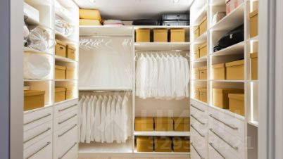 Планировка включает кухню-гостиную с обеденной зоной, мастер-спальню со своей гардеробной, детскую спальню, кабинет, две гардеробных, два санузла, кладовую, постирочную и холл. Дополнительно предусмотрено много мест для хранения вещей. Окна ориентированы на Малую Пироговскую улицу и благоустроенную территорию комплекса. Предусмотрено большое машино-место на 2 автомобиля.