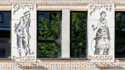 Фасады выдержаны в современном классическом стиле, украшены коваными элементами и барельефами авторства художника Павла Налича. В облицовке фасадов использованы натуральный камень с изящным резным орнаментом и декоративный кирпич природных оттенков.