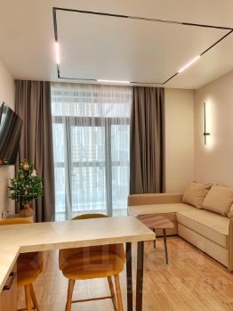 Планировка квартиры очень удачная: большая кухня-гостиная, спальня, с/у, общая площадь 45,7 кв.м. В квартире 1 санузел. Высота потолков 3,1 метра! Окна квартиры в пол, и выходят на бульвар и во двор, виды просто потрясающие! Красивое остекление 2 огромных лоджий 7 и 4 кв.м.