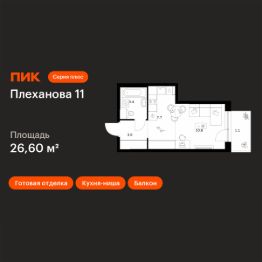 Продаётся квартира-студия площадью 26,6 кв.м на 2 этаже 31 этажного дома (Корпус 1.3, Секция 3) проекта ПИК Плеханова 11. Светлый просторный подъезд на уровне земли, функциональная планировка, большие окна, c отделкой.