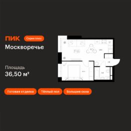 Продаётся 1-комн. квартира площадью 36,5 кв.м на 11 этаже 16 этажного дома (Корпус 2.3, Секция 5) проекта ПИК Москворечье. Светлый просторный подъезд на уровне земли, функциональная планировка, большие окна, c отделкой.
