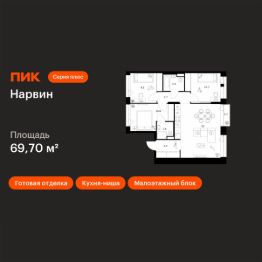 Продаётся 3-комн. квартира площадью 69,7 кв.м на 3 этаже 19 этажного дома (Корпус 1.2, Секция 2) проекта ПИК Нарвин. Светлый просторный подъезд на уровне земли, функциональная планировка, большие окна, c отделкой.