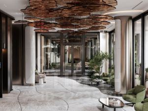 Для жителей создан изящный зелёный двор-сад со своей оранжереей, пространствами для спокойного и активного отдыха, включая детскую площадку по стандарту Kids Lab. Акцентное мощение двора перетекает в интерьеры приватного лобби с дорогой отделкой.