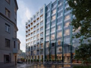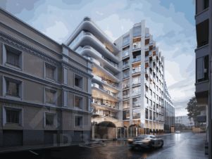 Каждая деталь "Палашёвского 11" отражает взыскательную роскошь. Эффектная архитектура сформирована тремя фасадами с разными характерами. Первый - с парящими террасами, выступающими до 4 м, второй - волнообразный, третий - полностью стеклянный.