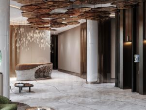 Для жителей создан изящный зелёный двор-сад со своей оранжереей, пространствами для спокойного и активного отдыха, включая детскую площадку по стандарту Kids Lab. Акцентное мощение двора перетекает в интерьеры приватного лобби с дорогой отделкой.