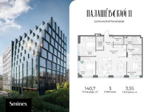 Просторная светлая квартира площадью 140,7 кв. м. Из панорамных окон открывается вид на Большой Палашёвский переулок. Два окна в кухне-гостиной обращены в сторону двора-сада.