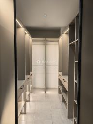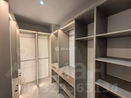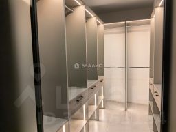 При входе в квартиру организована функциональная входная группа. Именно отсюда мы попадаем в гардеробную, площадью 6 м2 и шикарную гостиную, площадью 26 м2.