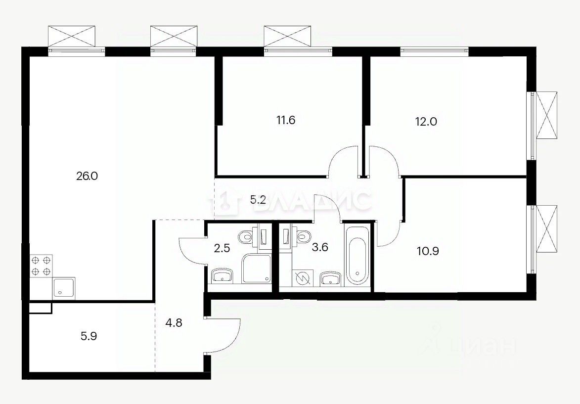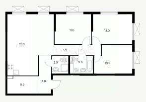- два санузла (один совмещённый, другой раздельный, с возможностью установки в нем душевой кабины).
