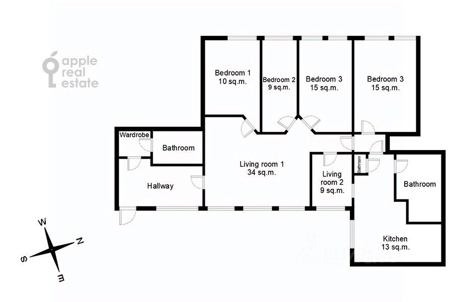 4 спальни, которые могут быть использованы как детские, кабинеты или мастерские.