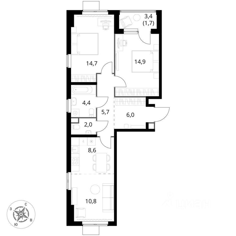 - Гибкая планировка - создайте пространство по своему вкусу.