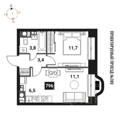 Продаётся 2-комнатная квартира, общей площадью 36.50 кв.м , на 26 этаже.