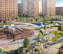 Проект включает создание 3 школ и 5 детских садов, фитнес-центра и 8 км велодорожек, вписанных в городскую среду. В безопасных дворах без машин появится современный плейхаб, игровые и спортивные площадки, фитнес-центр, лужайки для занятий йогой. Спроектированы зоны для выгула собак. На первых этажах домов откроются кафе, магазины, спортивные клубы - всё необходимое будет в шаговой доступности.