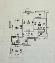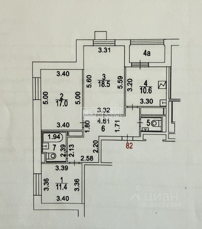 Изолированные 3 комнаты: 18,5м2/17м2/11,4м2;